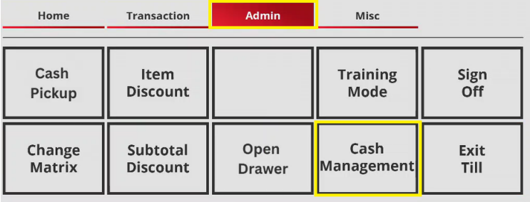 At the end of the day, navigate to the admin tab, then cash management.